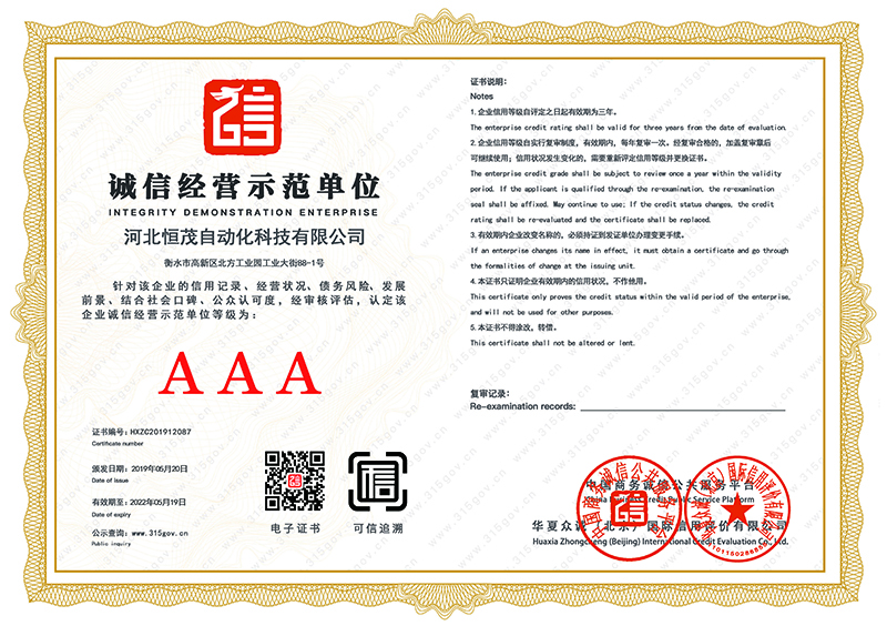 诚信经营示范单位3A证书