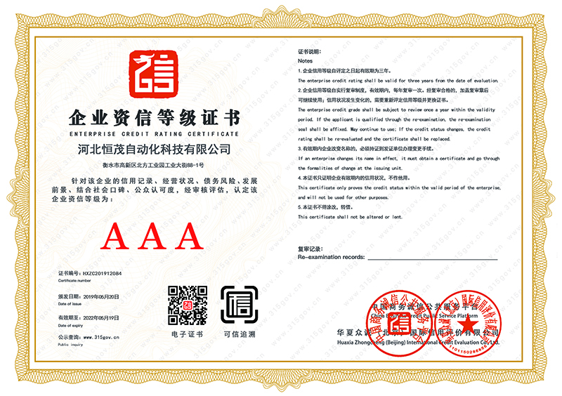 企业资信等级3A证书