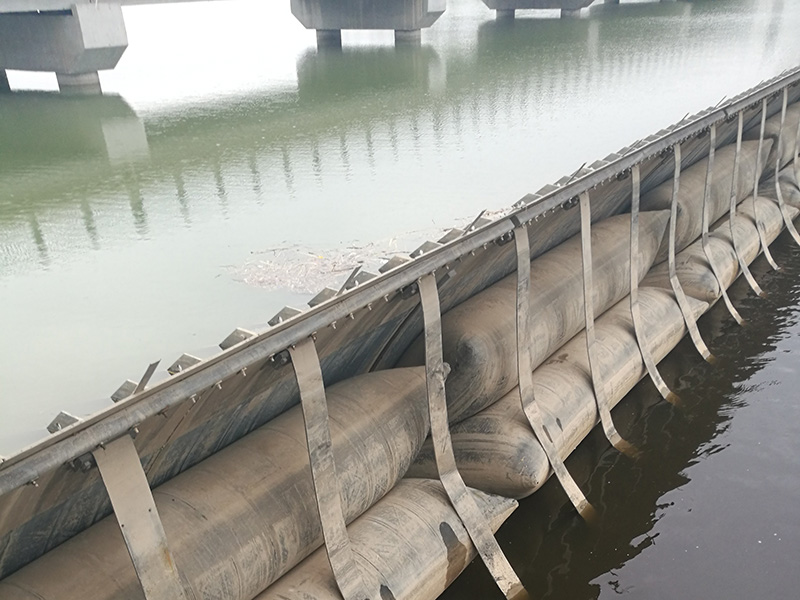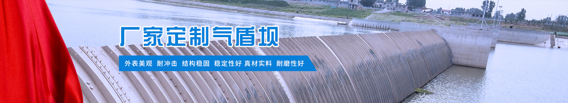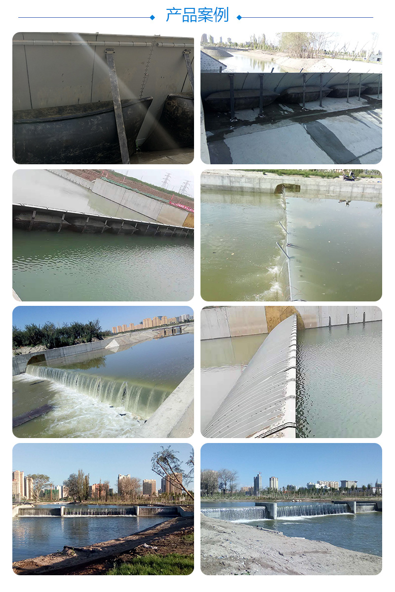 气盾坝,气盾闸,也称气动钢盾橡胶坝,是一种新型的挡水结构,其兼具橡胶坝和钢闸门的优点,刚柔并济。其结构主要由盾板、充气气囊及控制系统等组成。利用充气气囊支撑盾板挡水,气囊排气后塌坝,气囊卧于盾板下,可避免河道砂石、冰凌等对坝袋的破坏;气囊内填充介质为气体,塌坝迅速;各个部件均为预制部件,安装工期短;盾板及气囊模块化,便于修复。